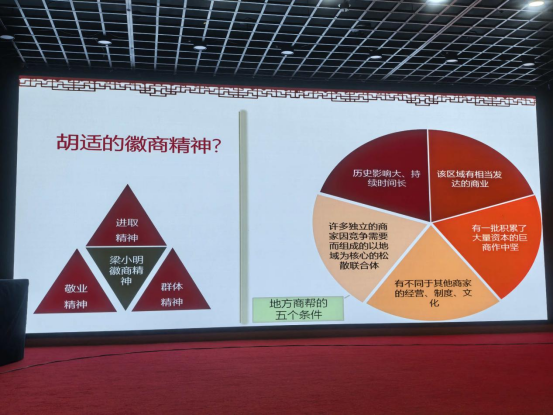 下午的“徽商讲堂”邀请到陈发祥老师为我们讲授《徽商的历史渊源及精神》,三个小时的讲座,老师旁征博引,引经据典,为我们系统讲解徽商文化知识,从徽商的起源到徽商精神的传承。陈老师的课堂,像一把钥匙打开了徽商历史的大门,从新安江畔的生存困境催生经商之路,到 “贾而好儒”的独特商风,用鲜活的史料与生动的案例,将徽商“以诚待人、以信接物”的精神讲得入木三分。印象最深的是他对徽商“宁可亏本,不可亏心”的解读,那些走南闯北的徽商,用坚守筑起商业信誉,也留下“贾儒相融” 的文化印记。这堂讲座不仅让我读懂徽商的兴衰脉络,更明白这份敢闯敢拼、重德守信的精神,至今仍是我们面对挑战、砥砺前行的宝贵财富。