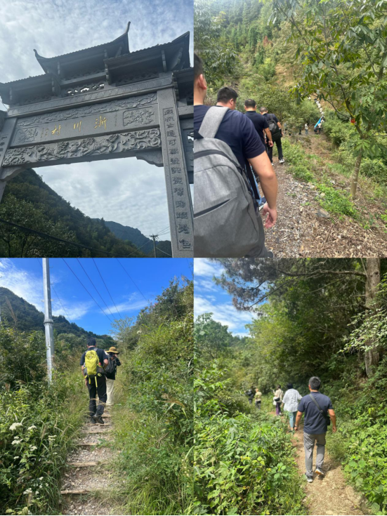 第二天的徽杭古道徒步拓展是一场身体力行的“精神溯源”,我们从永来村出发,踏上“荣归故里”之路,感受“徽骆驼”之行。踩着青石板路向上攀登时,汗水浸湿衣衫,双腿酸痛难忍,才真正体会到百年前徽商 “前世不修,生在徽州” 的艰辛,他们正是沿着这条崎岖山路,肩挑背扛走出大山,用脚步丈量商机。沿途的古桥、摩崖石刻与山间清风,仿佛都在诉说过往的商道传奇。当最终抵达山顶,俯瞰连绵群山时,不仅收获了征服困难的喜悦,更读懂了徽商 “敢闯敢拼、坚韧不拔”的精神内核。这一路上,我们相互扶持、鼓励,深刻体会到了团队的力量,爬坡时,体力好的同学主动接过他人的背包,在陡峭路段伸手拉一把;有人脚步放缓,身旁便会传来“加油,再坚持一下”的声音,疲惫仿佛在温暖的话语中消散。这条古道不仅让我们感受到徽商的坚韧,更让我们明白:一个人的攀登或许能走得快,但一群人的并肩才能走得远,这份携手同行的温暖,是比抵达终点更珍贵的收获。