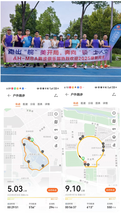 830日,在南艳湖跑团进行欢迎2025MBA新同学的跑步中,吴兆军团长的悉心带领下,平时只能跑3公里的我,第一次将5公里的配速从以往的6’30”提升到了6’00”,那种突破自我的喜悦难以言表。97日,学院跑团2025年第43次团跑,我第一次踏足合肥市政府广场,以6’13”的配速完成了9.1公里的跑步,跑出了一个令自己都感到惊讶的漂亮圈。这让我深刻体会到一个人可以跑得很快,但是一群人才能跑得更远的真谛。在跑团的陪伴下,我不再孤单,每一次奔跑都充满了力量。