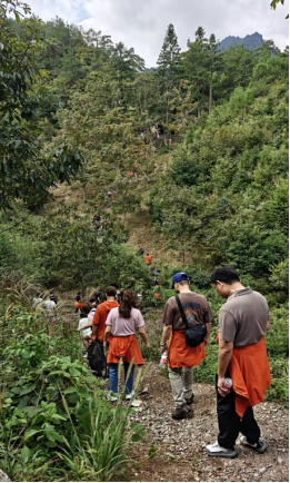 在陡峭的上行路段,团队协作显得尤为重要。我们自发形成了互助小组,体力较好的同学主动帮助其他同伴分担行李,有登山经验的同学在前面探路并提醒后方注意危险路段。在特别险要的地段,我们甚至需要相互搀扶,确保每个人安全通过。过程中前中后用对讲机实时互动,确保整个队伍的行进速度,不让一人掉队。