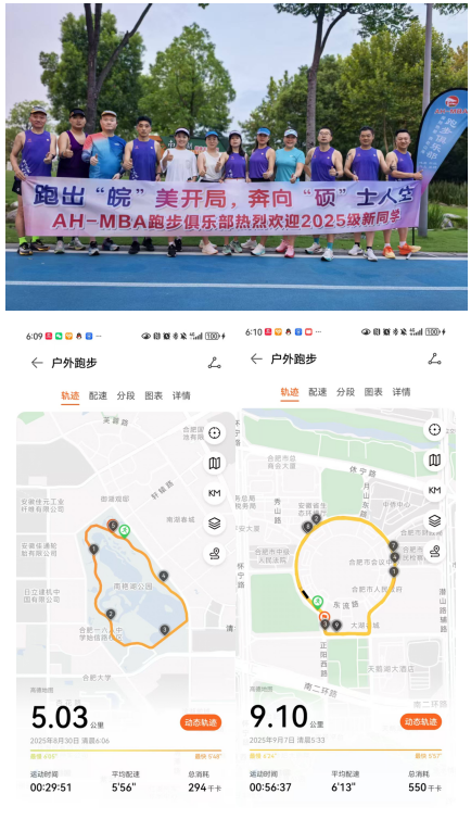 8月30日,在南艳湖跑团进行欢迎2025级MBA新同学的跑步中,在吴兆军团长的悉心带领下,平时只能跑3公里的我,第一次将5公里的配速从以往的6’30”提升到了6’00”,那种突破自我的喜悦难以言表。9月7日,学院跑团2025年第43次团跑,我第一次踏足合肥市人民政府广场,以6’13”的配速完成了9.1公里的跑步,跑出了一个令自己都感到惊讶的“漂亮圈”。这让我深刻体会到“一个人可以跑得很快,但是一群人才能跑得更远”的真谛。在跑团的陪伴下,我不再孤单,每一次奔跑都充满了力量。
