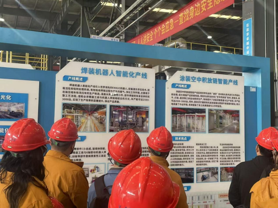 在车间里,焊装机器人智能化产线、涂装空中积放链智能产线等先进设施让我们叹为观止。以焊装产线为例,其引入世界领先的 FANUC 机器人,搭配激光寻位技术与活性炭吸附处理系统,不仅实现了焊接工序的自动化、精细化,更有效净化了生产环境。这种“智能设备 + 环保工艺”的组合,既提升了生产效率,又践行了绿色制造理念。