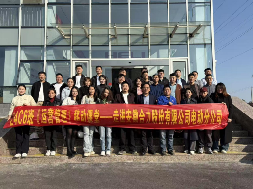 2025年11月15日下午,秋阳正好,微风不燥。安徽工商管理学院24C6班全体学生怀揣着对前沿制造技术的探究热忱,走进安徽合力股份有限公司电动叉车分公司,一场理论与实践深度融合的运营管理移动课堂就此启幕。《运营管理》授课老师宋琨泰、《战略管理》授课老师孙国正、班主任陈静与学生们一同沉浸式领略智慧制造的硬核实力与发展魅力。