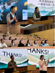 裴俊同学率先登场,他用流利且纯正的英伦腔,将黄山奇松、怪石、云海、温泉日出的神韵娓娓道来,让在场观众仿佛置身于那座天下第一奇山的云海之间,赢得了满堂喝彩。紧接着,钟国新同学带着家乡金寨的红色记忆走上舞台。她的英语演讲没有华丽的辞藻,却字字饱含深情。从金寨作为红军摇篮、将军故乡的光荣历史,到如今脱贫攻坚后乡村的崭新面貌;在英语的语境中搭建起一座连接过去与现在的桥梁,让这座大别山深处的小城,以鲜活而厚重的形象走进了每个人的心里。殷成茗同学的登场则为现场铺展开一幅古道新声的时代长卷,她语调温婉却藏着坚毅力量,充分展示了其作为交控集团讲解员的风采,其将讲述的脉络从斑驳古道延伸至通途新道,更以自身经历为注脚,让新徽道精神有了可触可感的模样。她的讲述将个人成长与地域发展紧密相连,让新徽道精神在古道与新道的交织中愈发鲜活。刘伟同学的登场则瞬间将现场氛围拉入凝重而滚烫的红色记忆中,用饱含深情的英语,为大家讲述了那段鲜为人知却震撼人心的孙大娘舍子救红军的往事。刘伟的讲述没有宏大的叙事,却以细腻的情感刻画,让孙大娘这个普通农妇的形象立体鲜活,也让大别山军民鱼水情的红色精神,在饱含温度的英语表达中直抵人心。