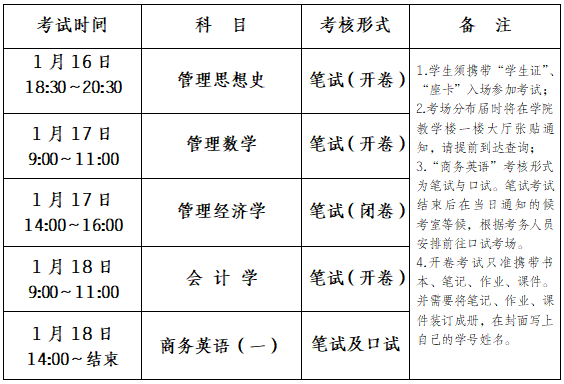 经研究2025级MBA第一阶段考试,定于2026年1月16—18日在学院教学楼内进行,具体安排见下表: