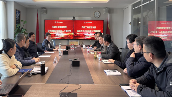 3月12日上午,一场别开生面的“百师进百企”活动在中节能国祯环保科技股份有限公司(以下简称“中节能国祯”)拉开帷幕。应企业邀请,安徽工商管理学院黄攸立教授、李德明教授、童义俊老师一行走进这家央企混改典范校友企业,通过一场链接合肥主会场与全国七个大区域线上分会场的专题讲座与深度座谈,为企业发展注入智慧动能。此次活动不仅是学院服务社会的生动实践,更将企业实际需求与省级教学质量工程课题研究紧密结合,探索产学研用深度融合的新路径。